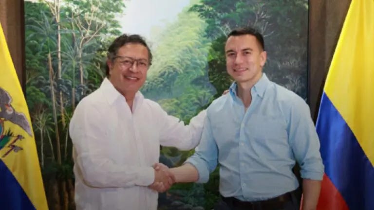 32. COLOMBIA: El presidente de Colombia, Gustavo Petro, se reunió este domingo con su homólogo ecuatoriano, Daniel Noboa y acuerdan reimpulsar la protección ambiental y la cooperación fronteriza (TS)